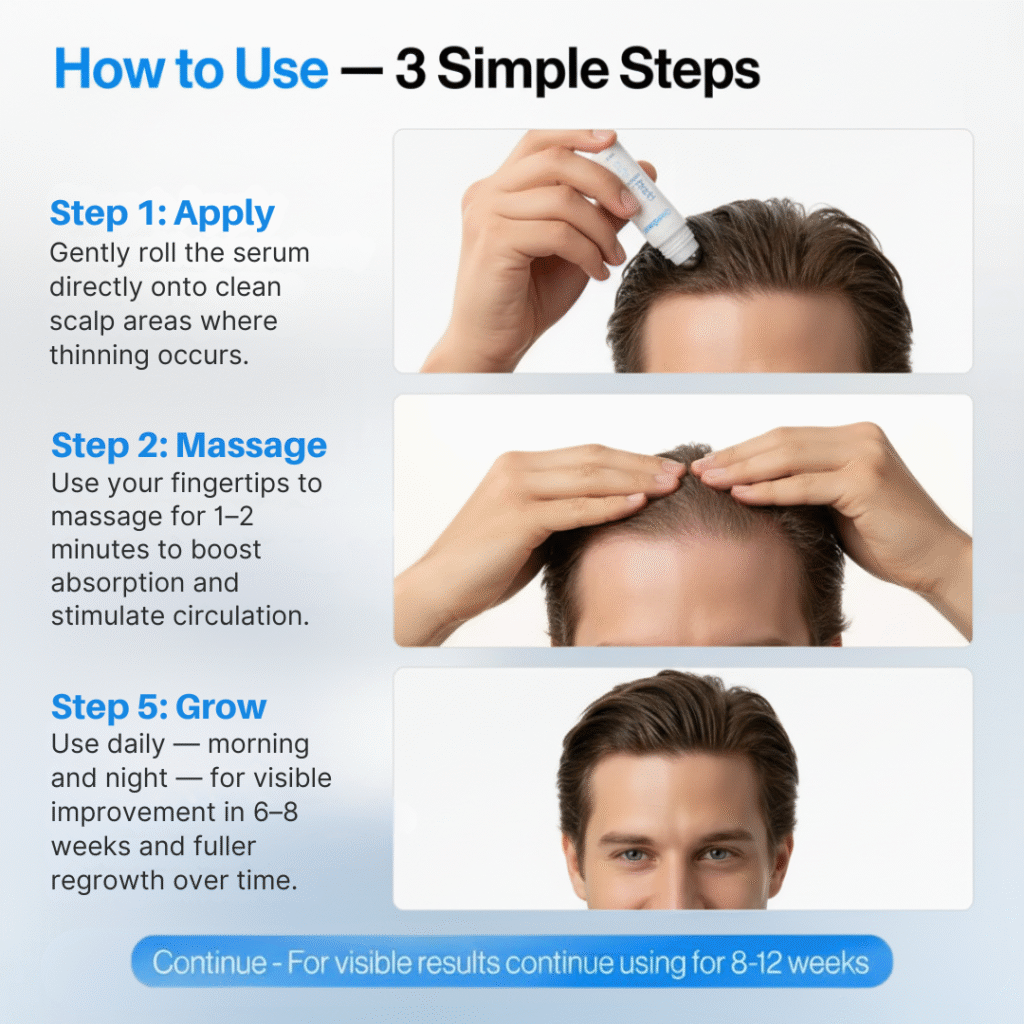 Results may vary, but most users report visible regrowth within 6–8 weeks of consistent use.