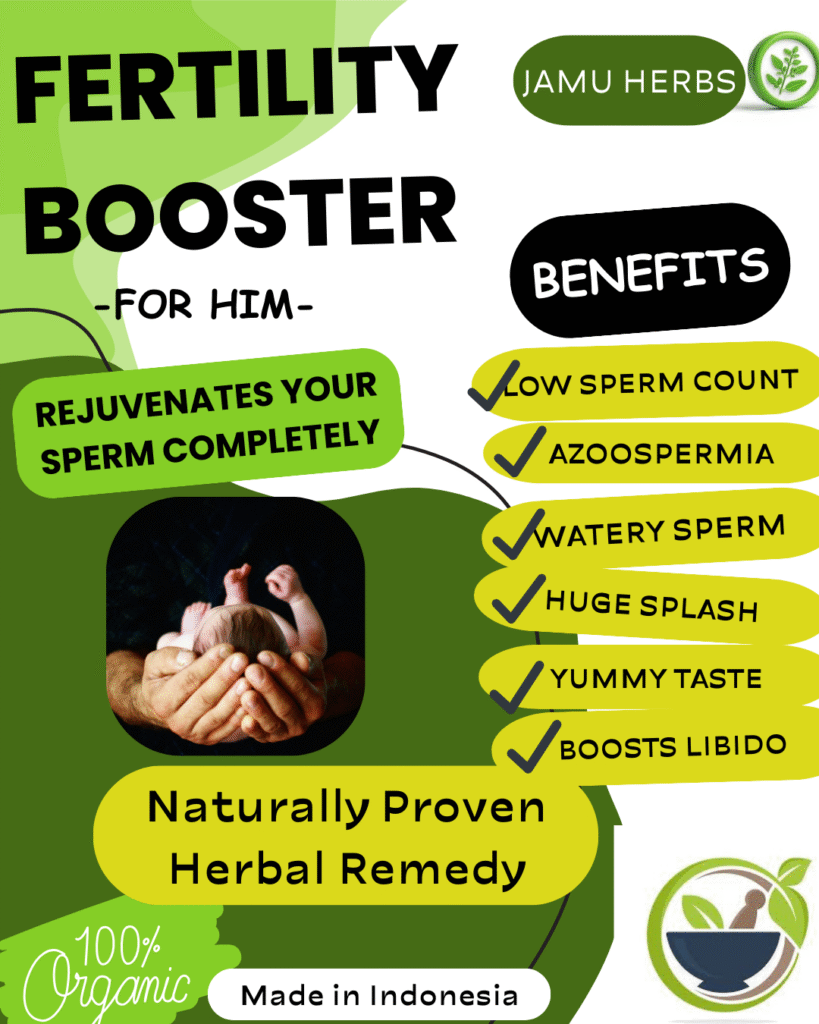 Fertility Booster by Jamu herbs is the ideal herbal sperm booster supplement carefully manufactured to increase your sperm count, health, and mobility.